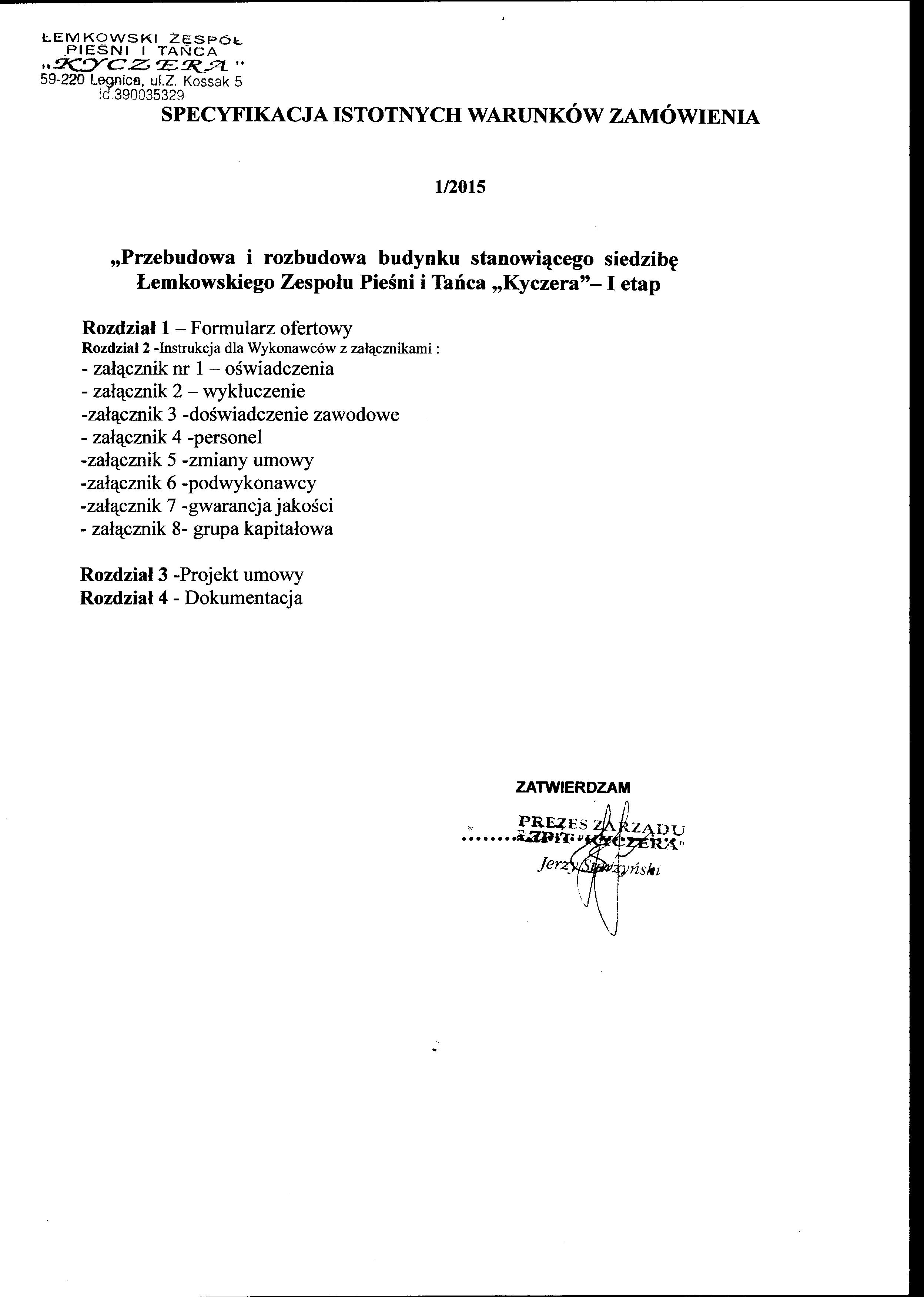 Uzupełnienie dokumentacji z dnia 13.10.2015 - dostępne na dole pod załącznikami
